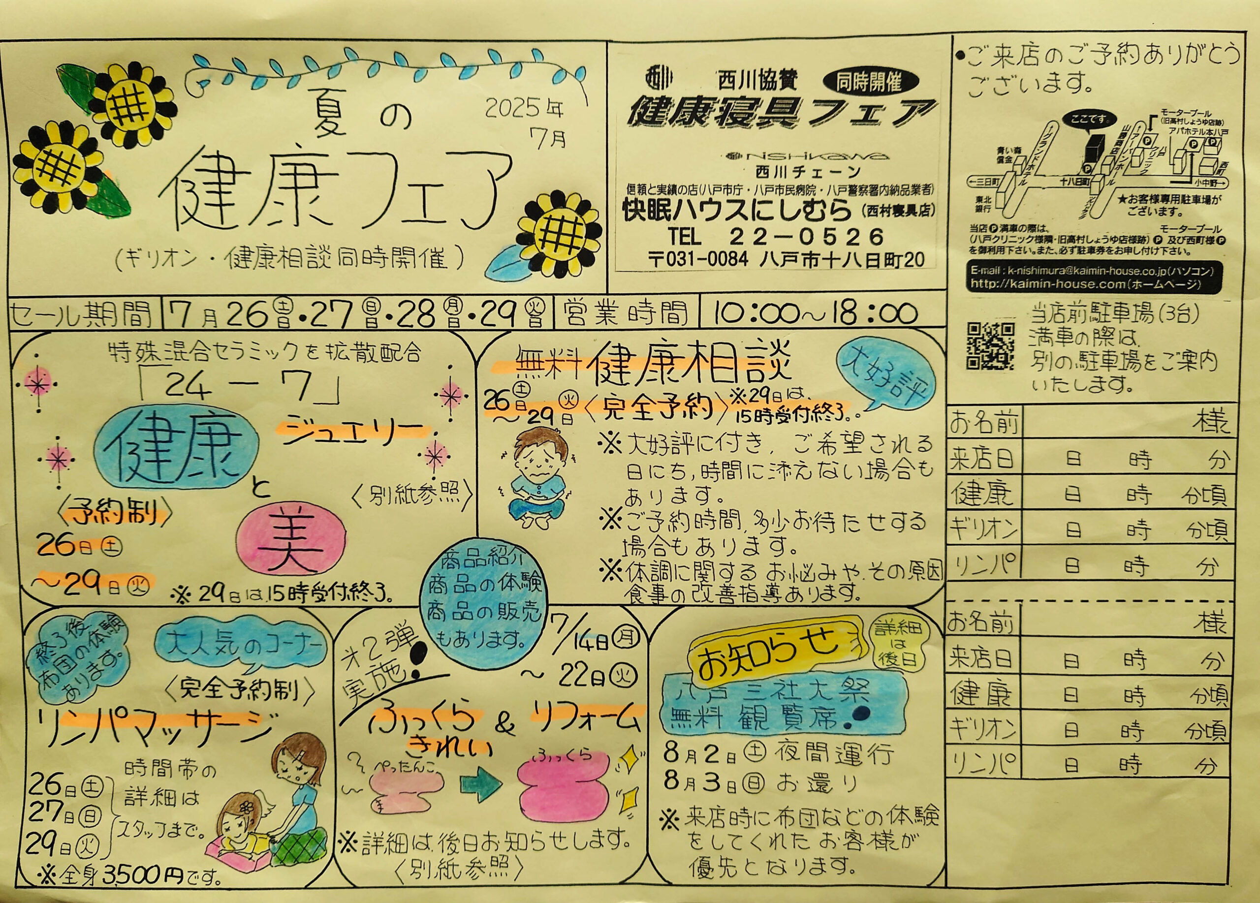 • ・無料健康相談会【完全予約制】